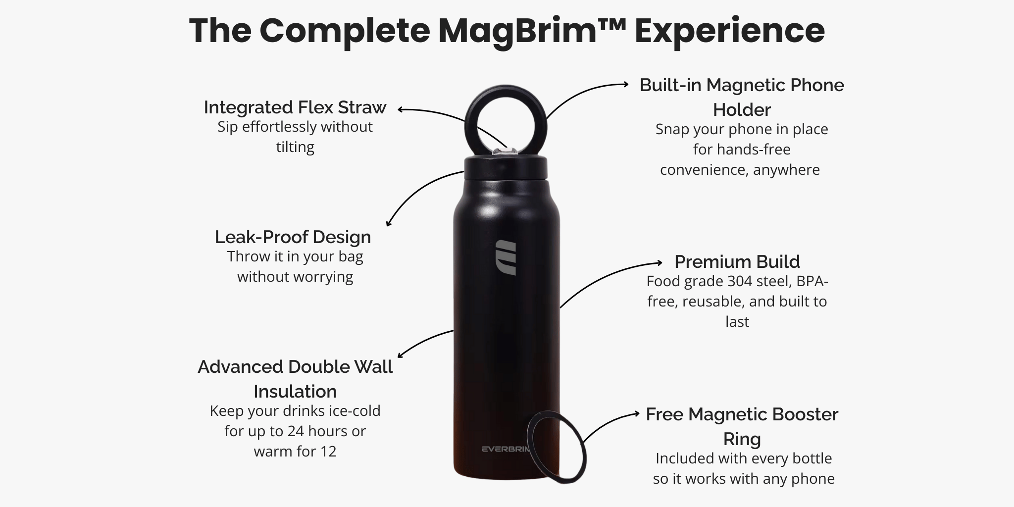 And yes, Android user, we’ve got you covered. Every bottle comes with a MagSafe booster ring so you can snap in instantly.